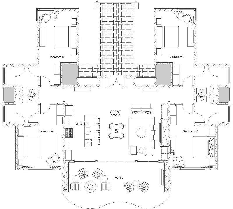 - Four bedrooms with king-size beds with en-suite bathrooms
